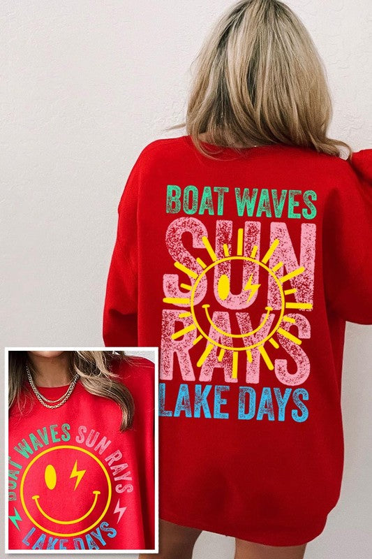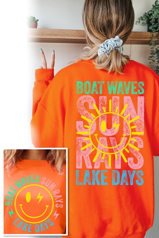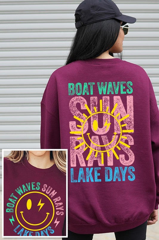 Boat Waves Sun Rays Lake Days Graphic Fleece Sweatshirts.