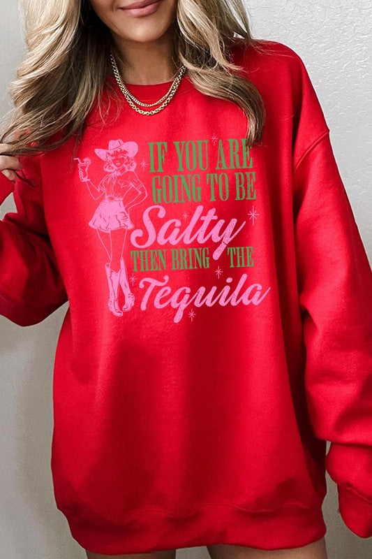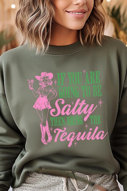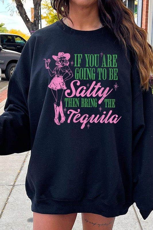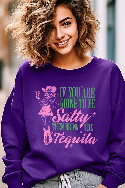 Western Cowgirl Tequila If You Are Going to be Salty Then Bring the Tequila Graphic Fleece Sweatshirts.