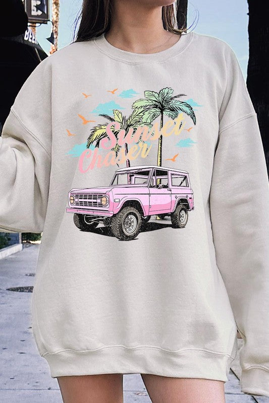 Sunset Chaser Bronco Graphic Fleece Sweatshirts.