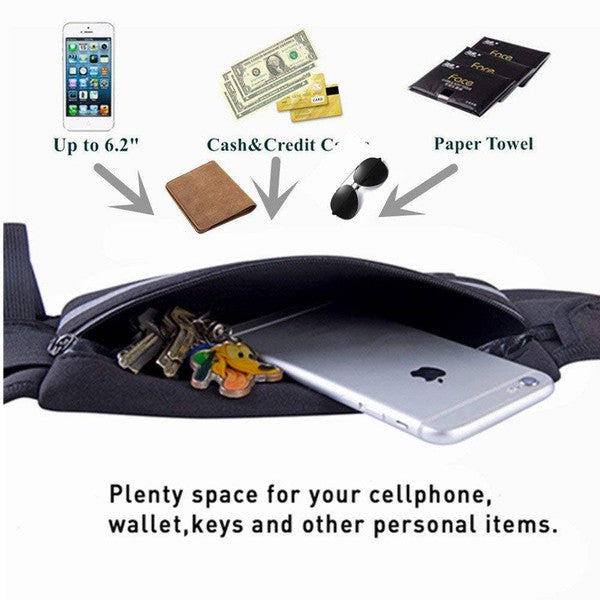 Sports Running Belt and Travel Fanny Pack for Jogging, Cycling and Outdoors with Water Resistant Storage Pocket - Slim, Adjustable and Elastic to Hold Cell Phones, IDs and Keys