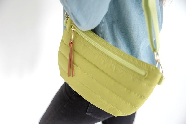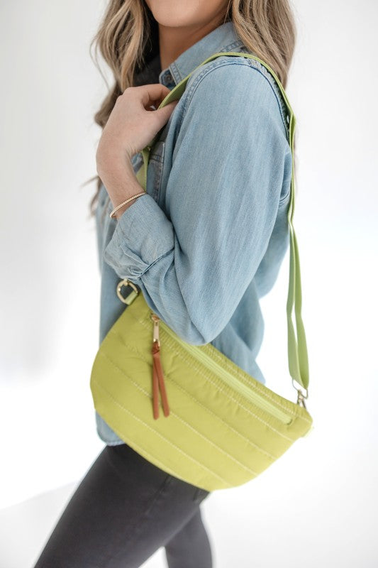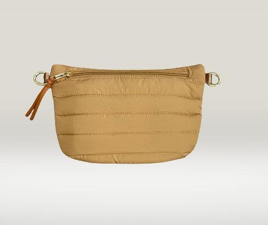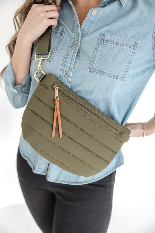This bag is a trendy take on the updated fanny pack that can be worn in multiple ways. Wear it as a crossbody, bum bag, belt bag, fanny pack, or shoulder bag. Available in 4 colors and features a fun half moon shape with a coordinating canvas strap and gold hardware. Inside is a zippered pocket to keep all of your essentials safely organized.