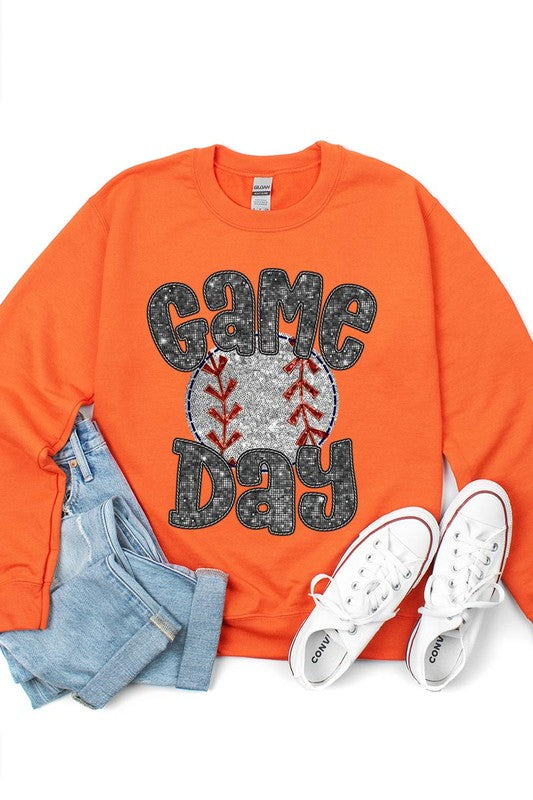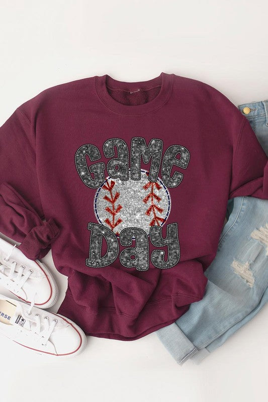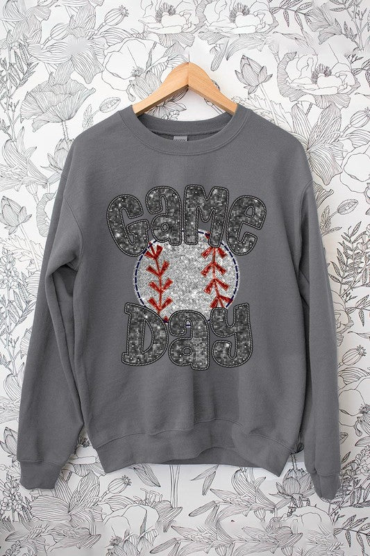 Baseball Game Day Graphic Fleece Sweatshirts. NOT SEQUINS FABRICS