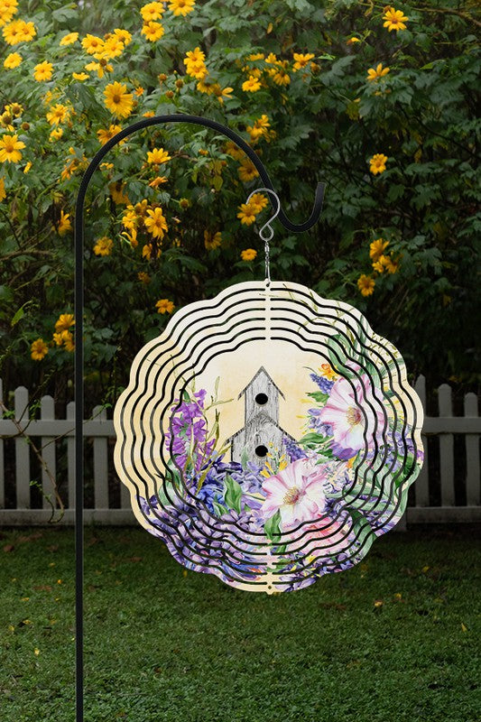 Birdhouse Floral Yellow Bck Spring Wind Spinner