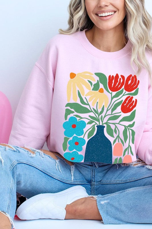 Boho Abstract Floral Graphic Fleece Sweatshirts.