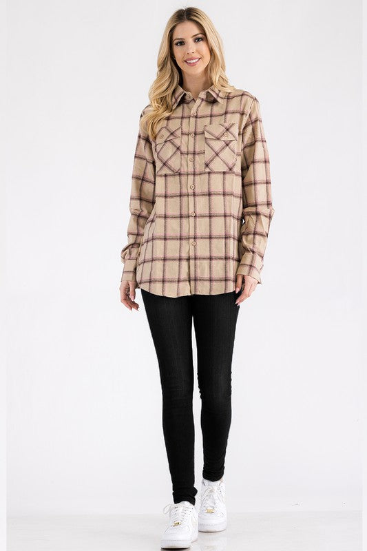 Boyfriend Fit Checker Plaid Flannel Long Sleeve