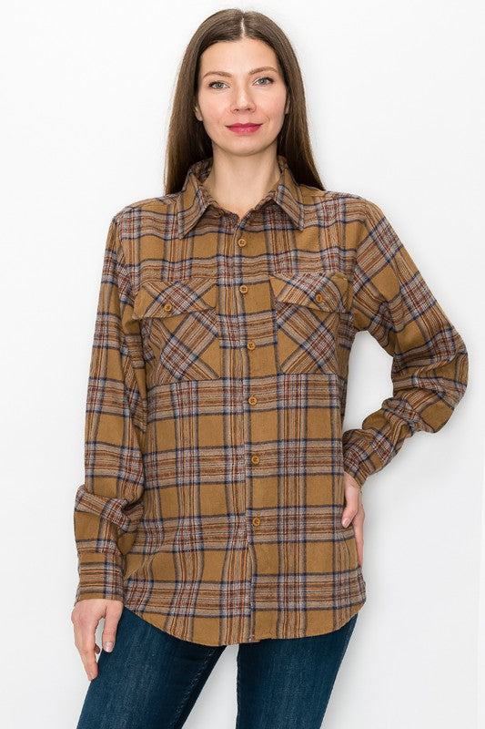 Boyfriend Fit Checker Plaid Flannel Long Sleeve