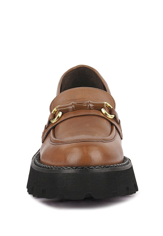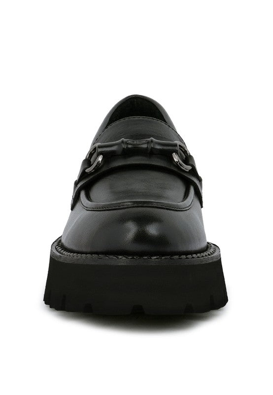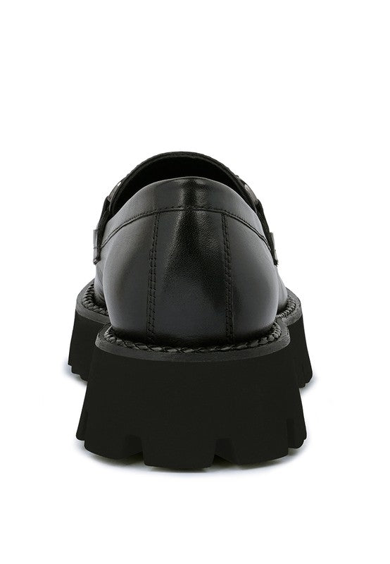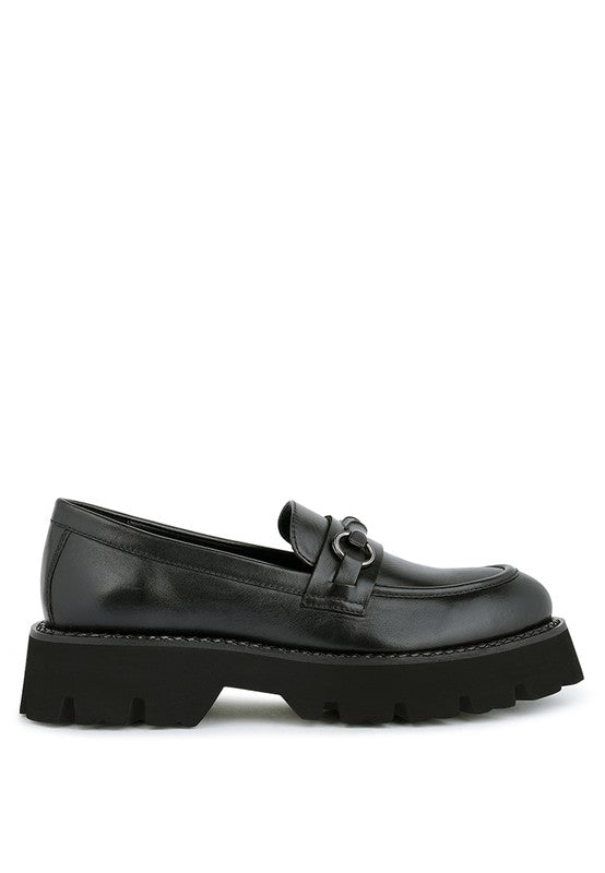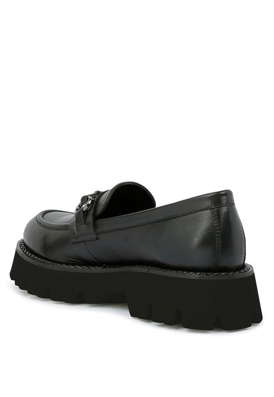Stay afloat in style! The leather loafers handcrafted on lightweight specially developed outsole which offers grip and durability to the shoe is a statement footwear straight from high street. It has metallic sling buckle on top - the Horsebit loafer is work work and beyond!