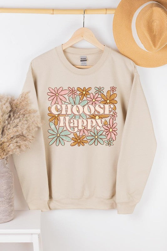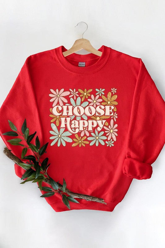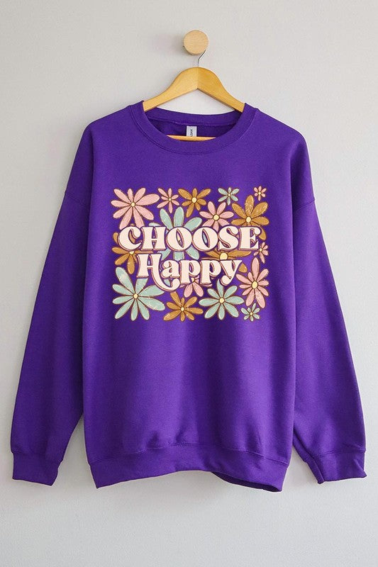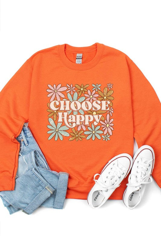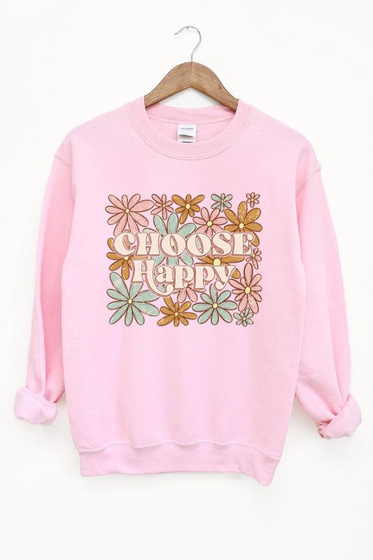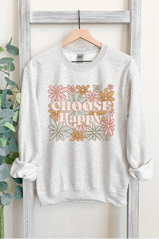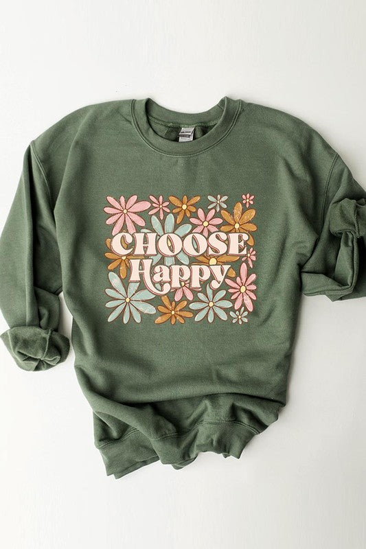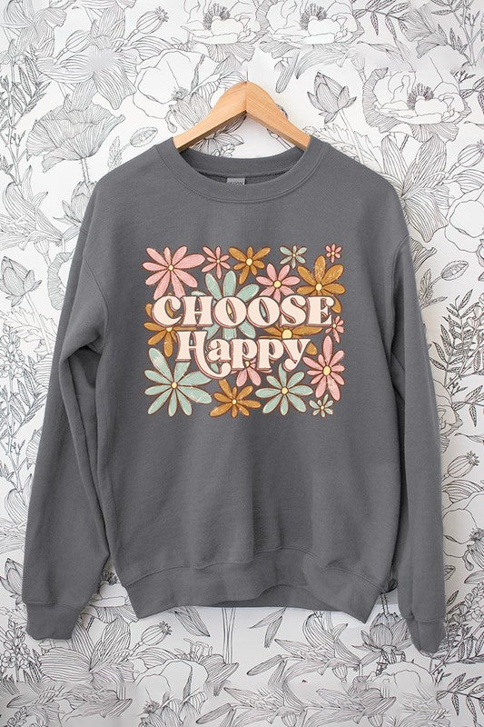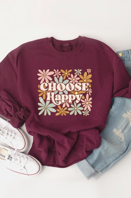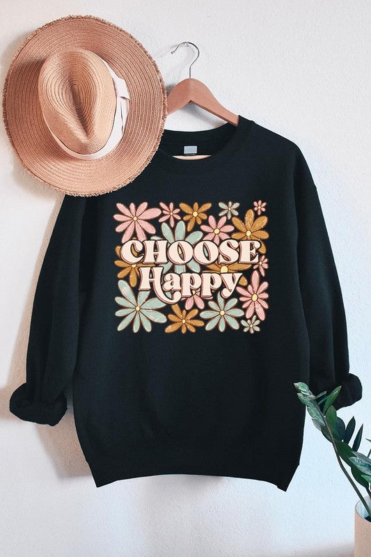 Choose Happy Floral Graphic Fleece Sweatshirts.