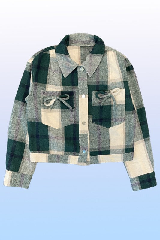 Cropped flannel jacket with bow detailing