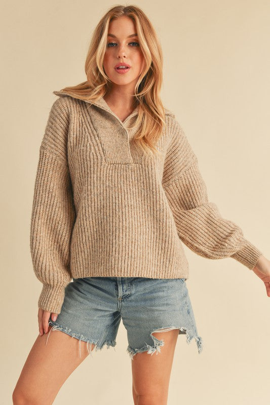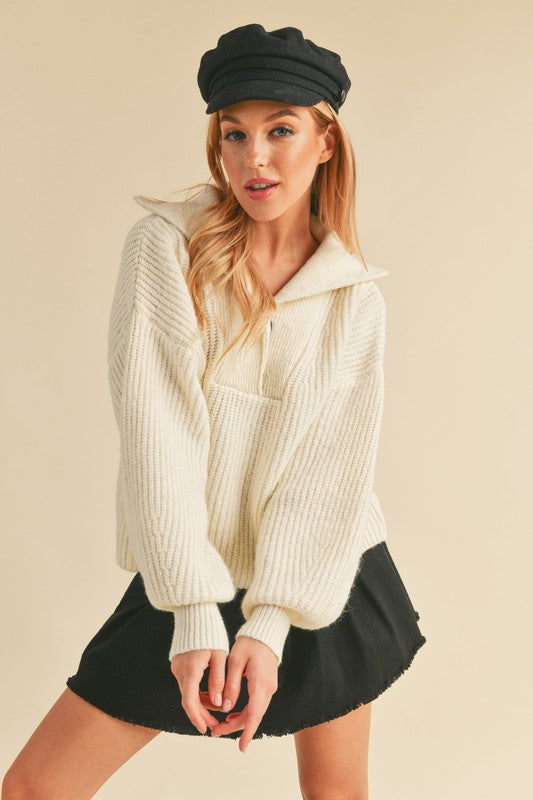 Wrap yourself in cozy elegance with our knit Danae sweater featuring a chic henley neckline and on-trend balloon sleeves. Crafted from thick yarn, this sweater ensures warmth and comfort during chilly days. The loose fit adds a touch of effortless charm, making it the perfect combination of style and comfort.