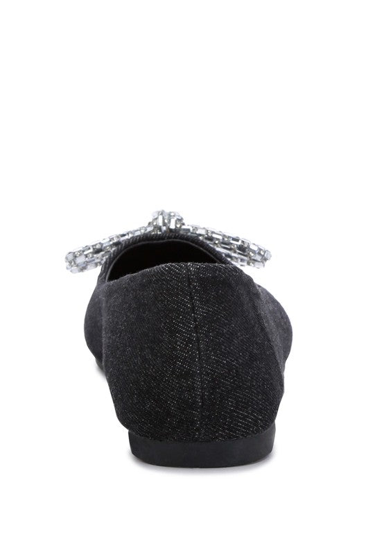 Add a touch of bling to your everyday ensemble with these rhinestones embellished bow detail ballerinas. The denim ballet flats are casual and comfortable with light cushion insoles and the rhinestones just elevate the visual aesthetics adding a bit of fun.