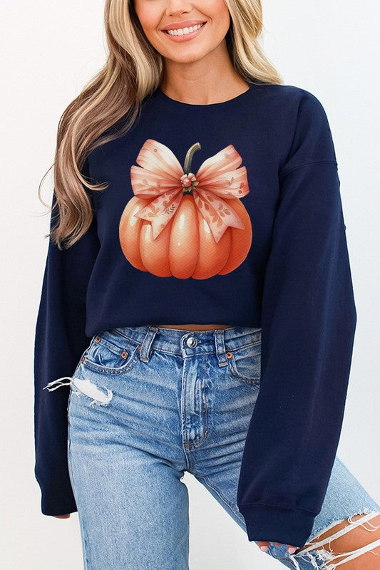 Fall Autumn Pumpkin Bow Graphic Sweatshirt