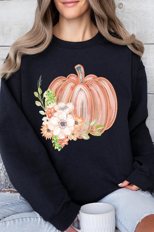 Flowers Fall Pumpkin Graphic Fleece Sweatshirts.