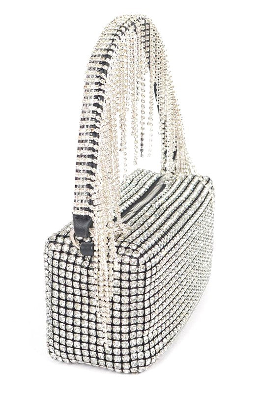 Fringe Rhinestone Curtain Handle Clutch Bag