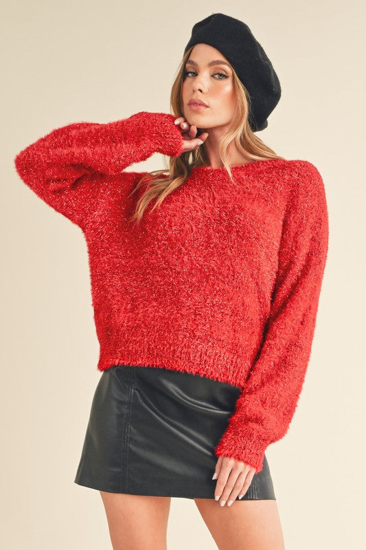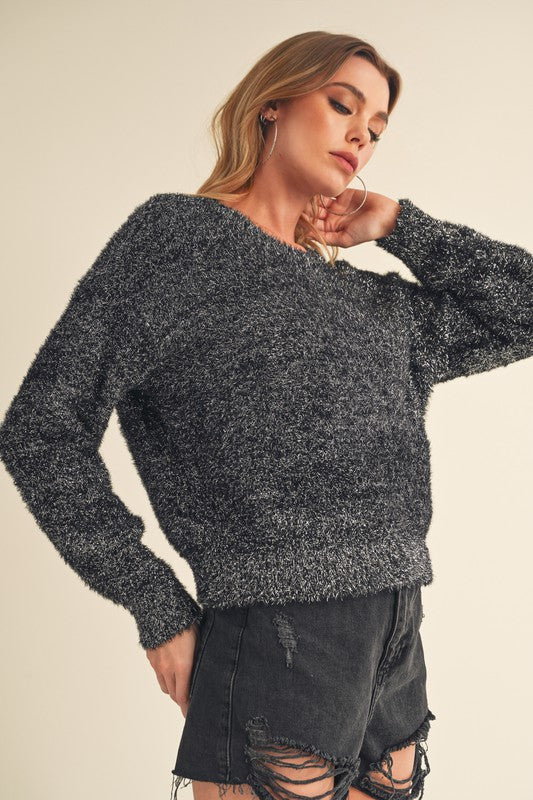 Life of the party, turn heads in the Geila sweater perfect for a night out in the city featuring a relaxed fit scoop neck design.