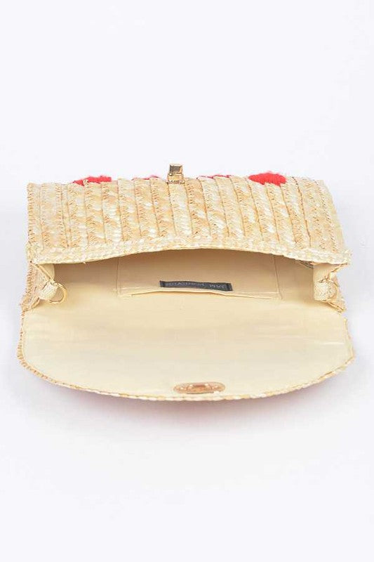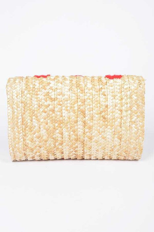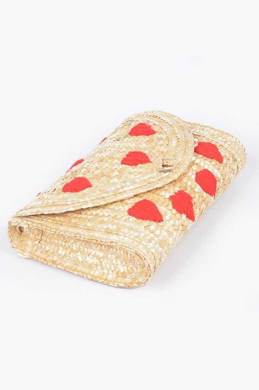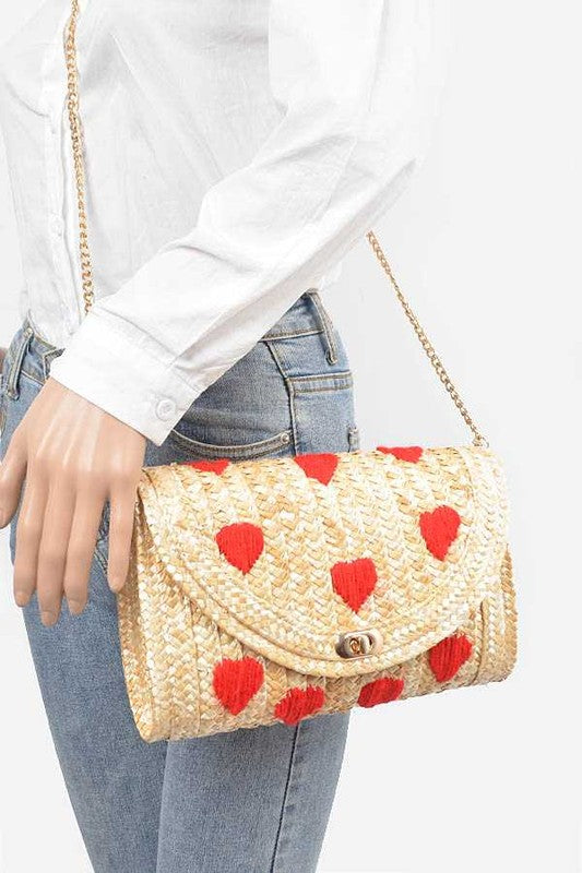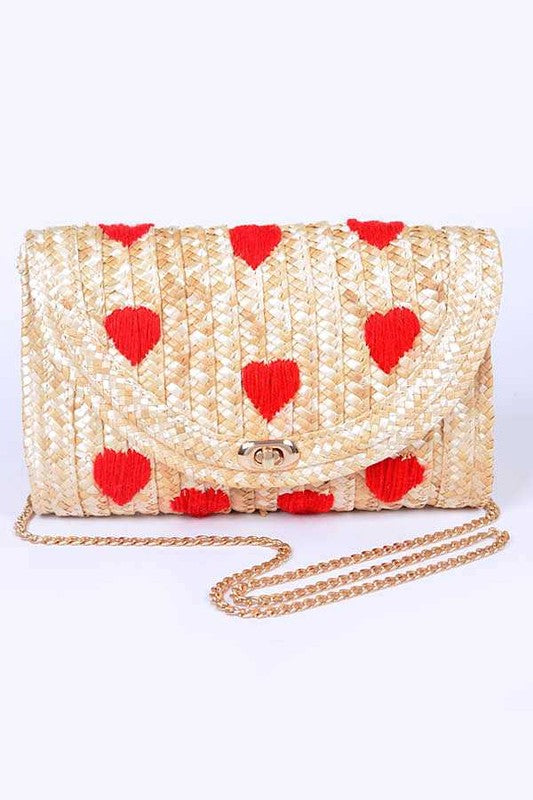 Heart Pattern Straw Convertible Clutch Bag