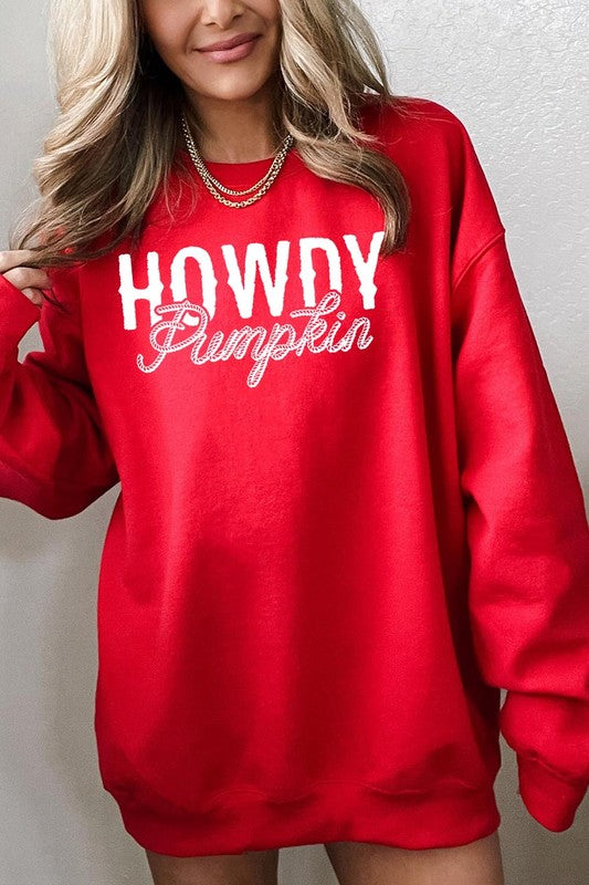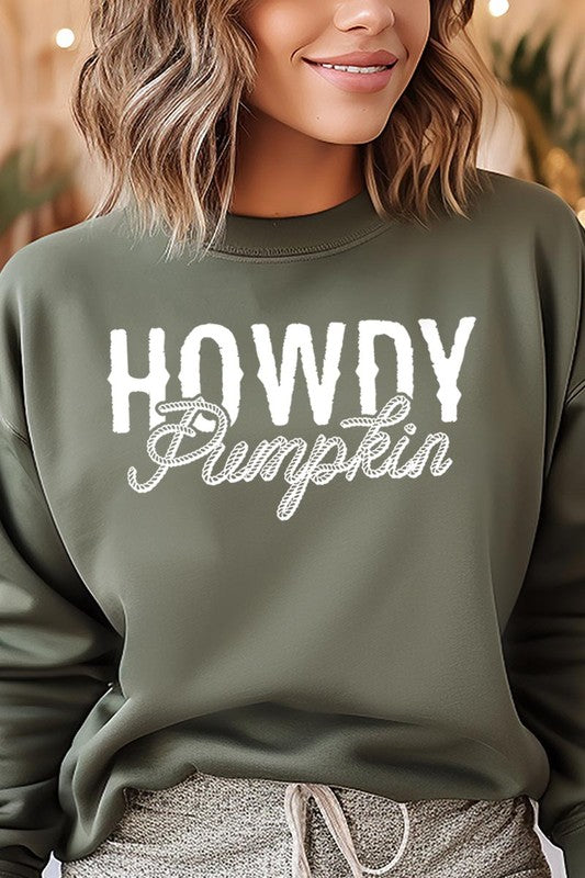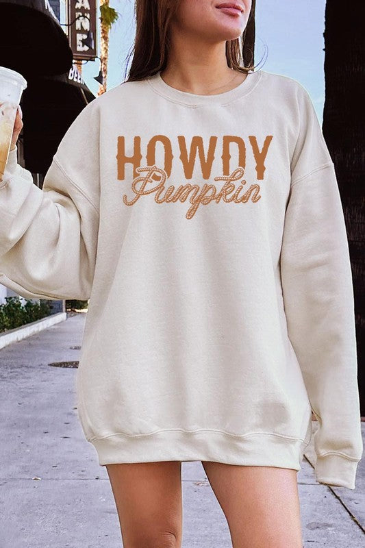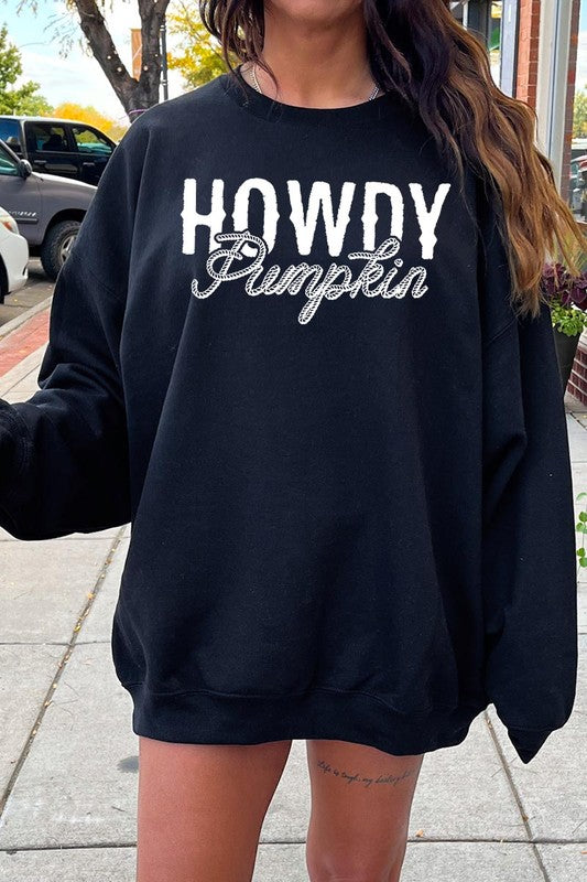 Howdy Pumpkin Graphic Fleece Sweatshirts.