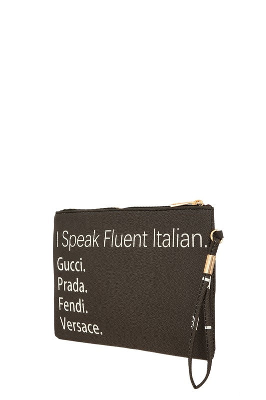 I Speak Fluent Italian Faux Leather Clutch