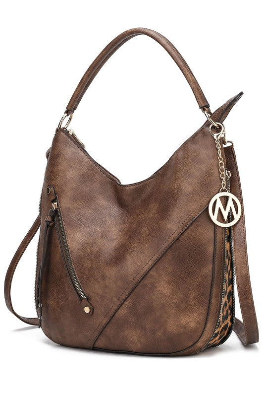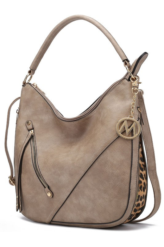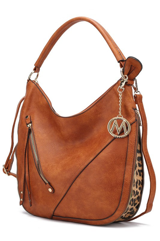 Interior features a spacious compartment with a zippered pocket plus three slipped in pockets.