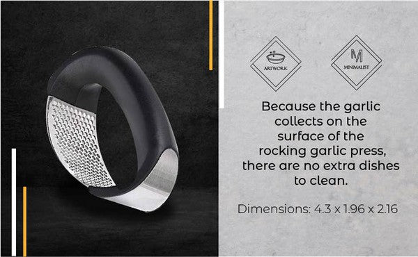 NEW INNOVATIVE ROCKING GARLIC PRESS. This new garlic press with an arc shape and comfortable handle design make squeezing a breeze, even for those with weaker grip or small hands.