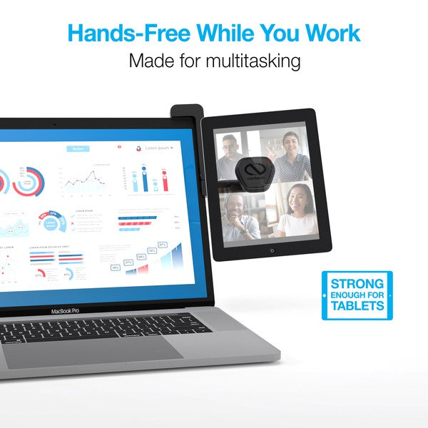 Enjoy a hassle-free, quick installation by sliding the mount onto the top or side of any laptop screen and simply tightening the thumb screws. Then, hover your phone near the magnetic head, and four rare-earth magnets instantly grasp on, holding it in place. Create an ergonomic second-screen setup for your laptop by securing your phone at eye level and within easy reach.