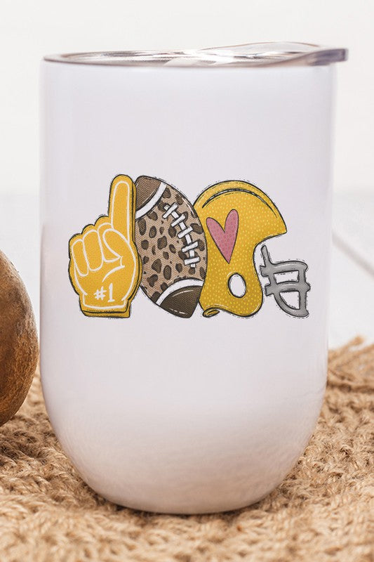 12 oz Stainless Steel Wine Tumbler. Image printed on both sides. Includes lit and plastic straw. Double wall vacuum insulation.
