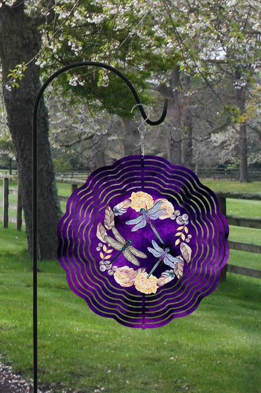 Peach Flowers Dragonflies Purple Bkg Wind Spinner