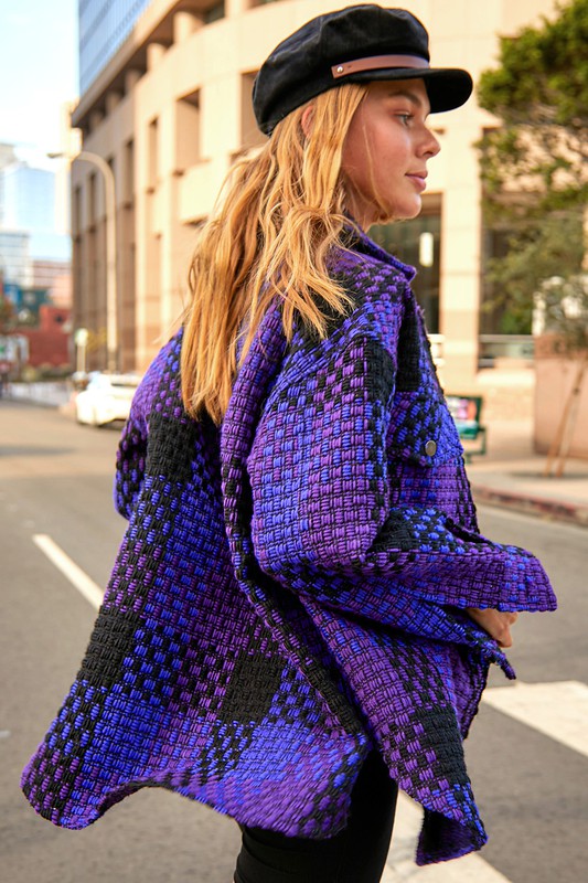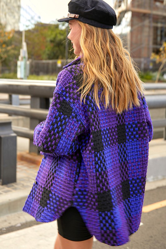 A brushed material coat in a checked pattern - long and perfect for autumn and features an oversized longline fit with long sleeves, two chest pockets and two side pockets with leather detail. Team this with jeans for an effortless vibe.