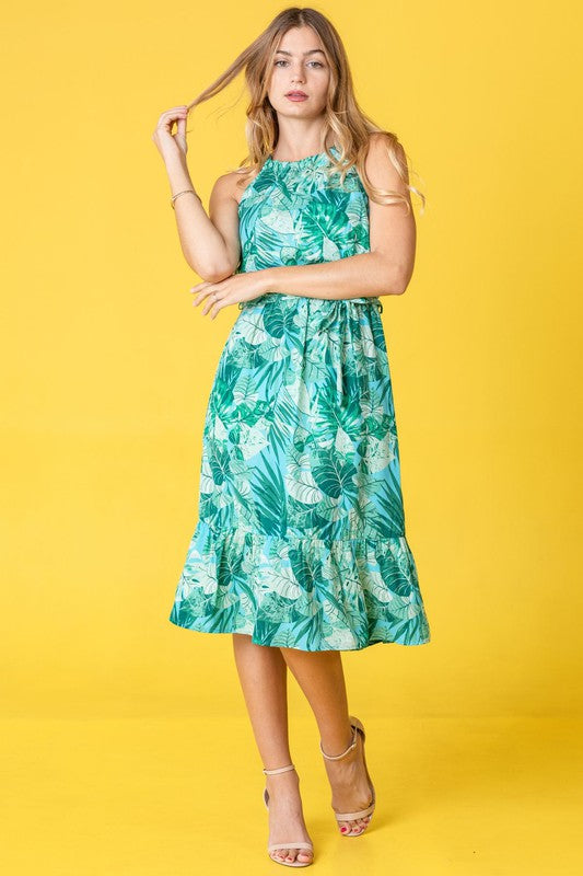 Halter Neck Tropical Sash Dress