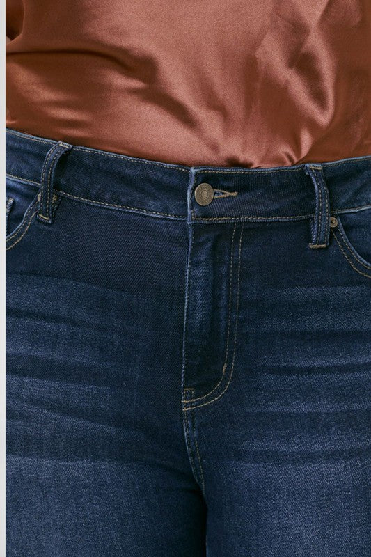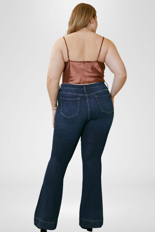 Elevate your denim game with our Plus High Rise Flare jeans in a dark stone wash. These jeans are designed for style and comfort, with a high-rise fit that flatters your figure and a flared leg for a touch of retro chic. The dark stone wash adds a classic yet edgy look to your outfit, making them suitable for a variety of occasions. Made with stretch fabric, these jeans provide the flexibility and ease of movement you need for all-day comfort.