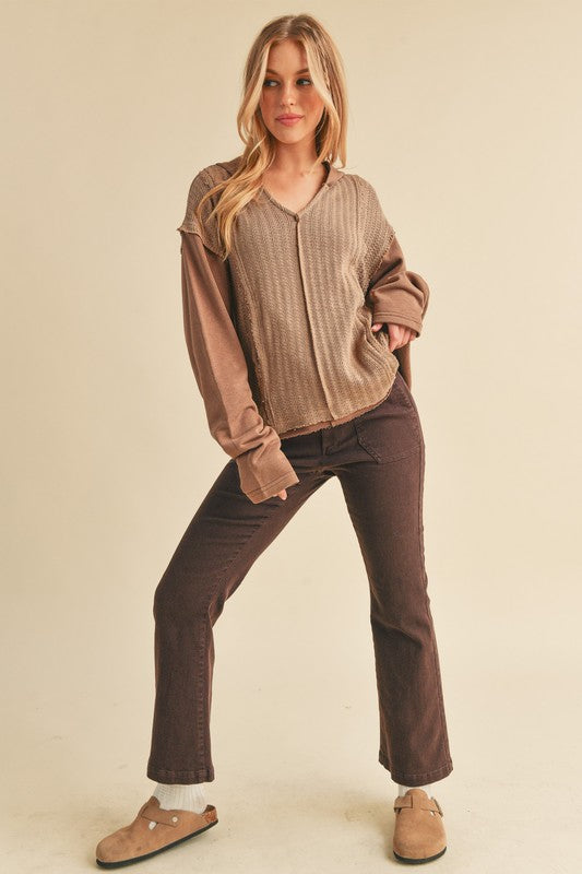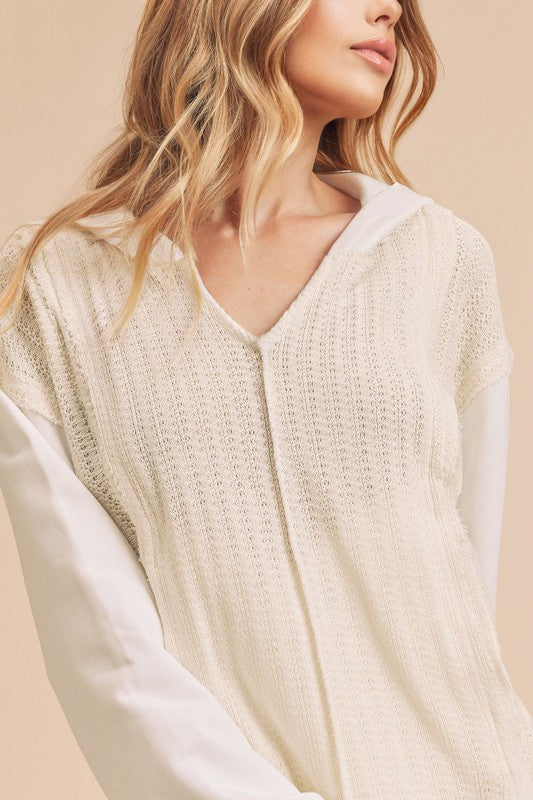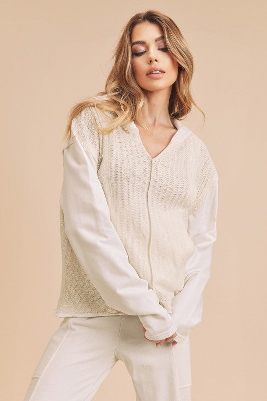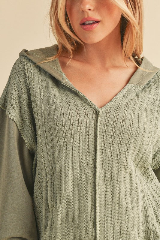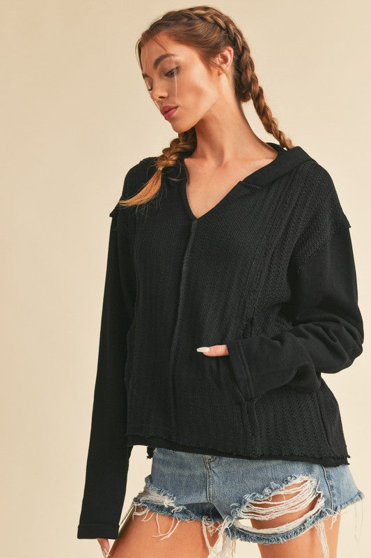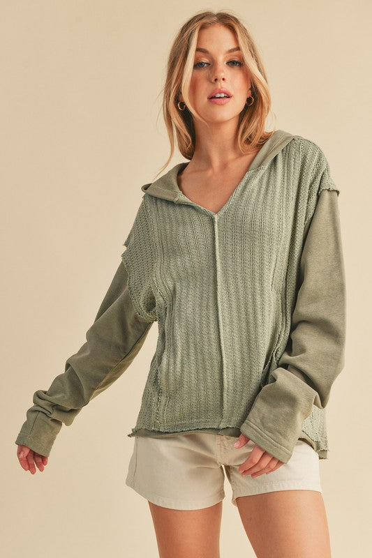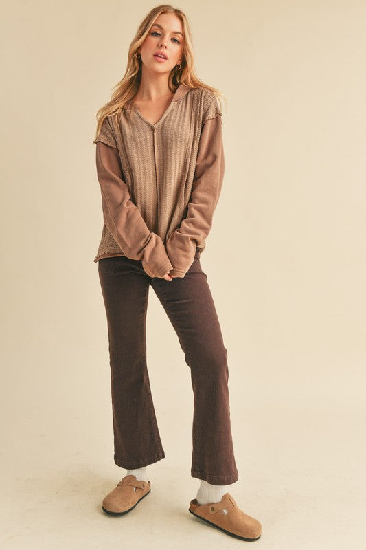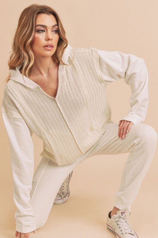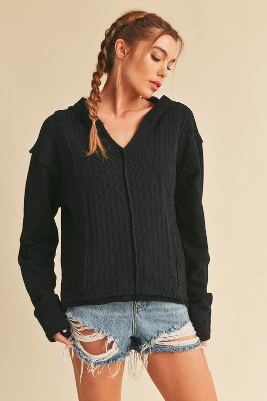 Retro and edgy, the Raquel hoodie pullover features a classic waffle-knit fabrication with front pockets and exposed seaming throughout for a true lived-in look.