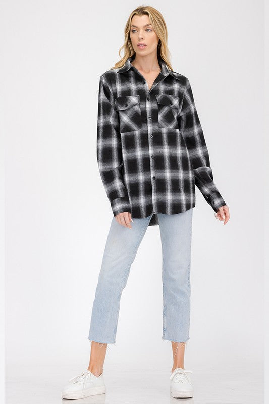 Regular Fit Checker Plaid Flannel Long Sleeve