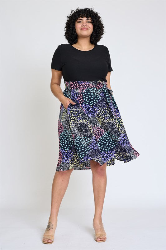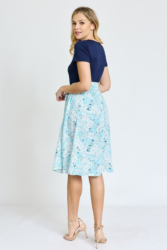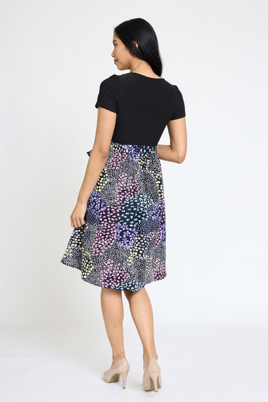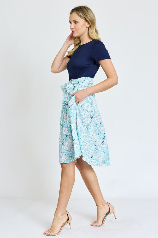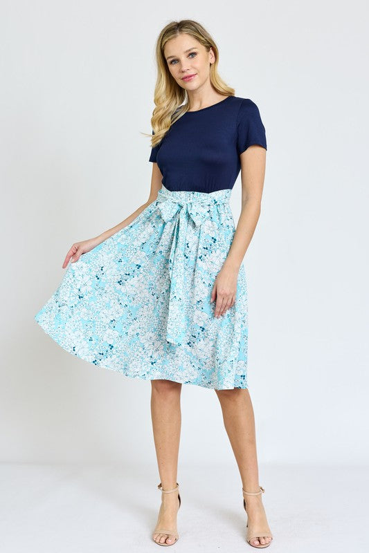 Short Sleeve Floral Sash Midi Dress
