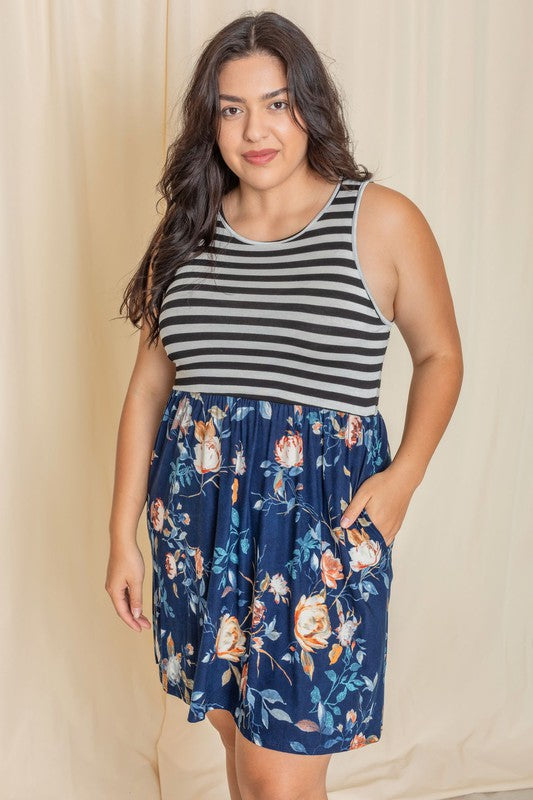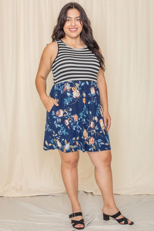 Stripe Sleeveless Mini Dress