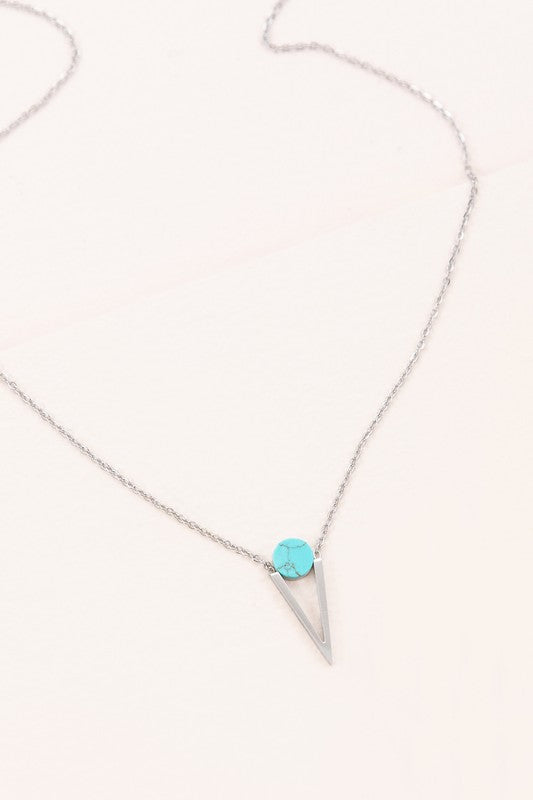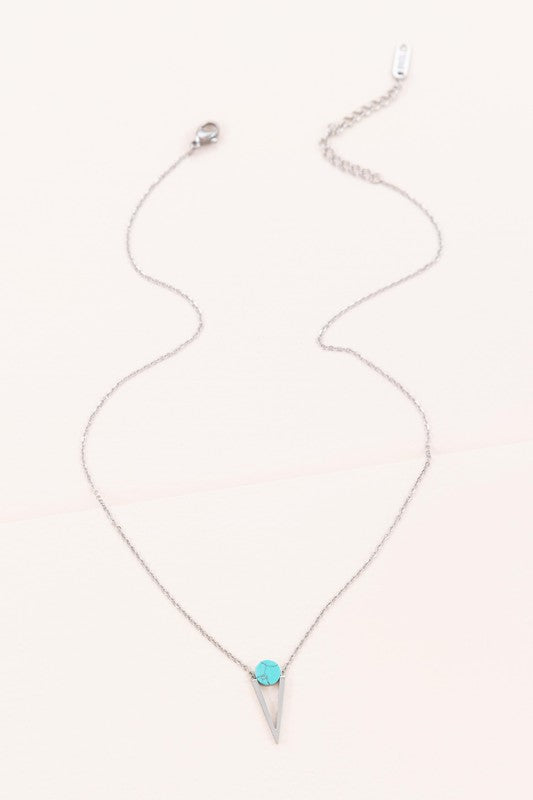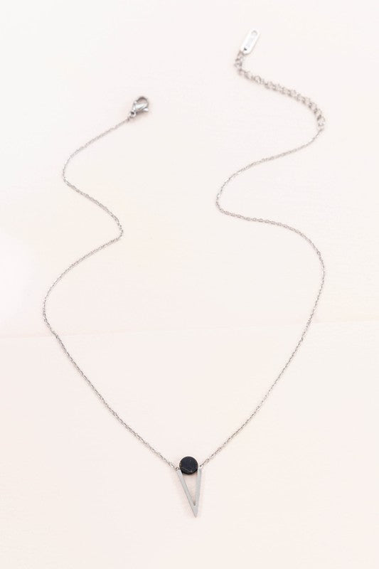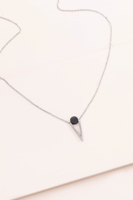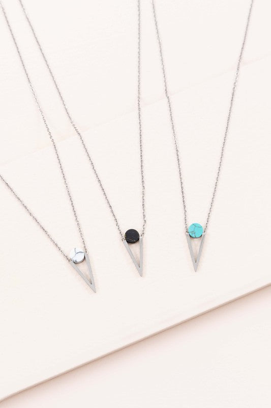 A touch of edge and marble for a modern take on a charm necklace. Ensemble this necklace with your favorite v-neck t-shirt.