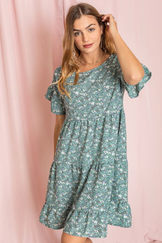 Paisley Double Ruffle Mid Dress