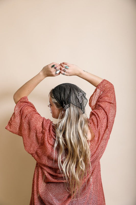 Tulle Lace Embroidered Poppy Headscarf