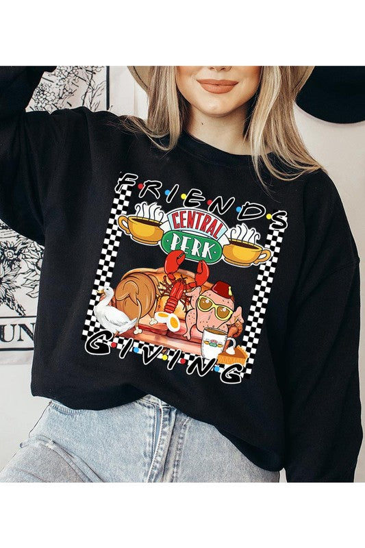 THANKSGIVING,FRIENDS,TURKEY,CENTRAL PERK UNISEX FLEECE SWEATSHIRT,GRAPHIC TEE,GRAPHIC TSHIRTS,TSHIRTS,TEES