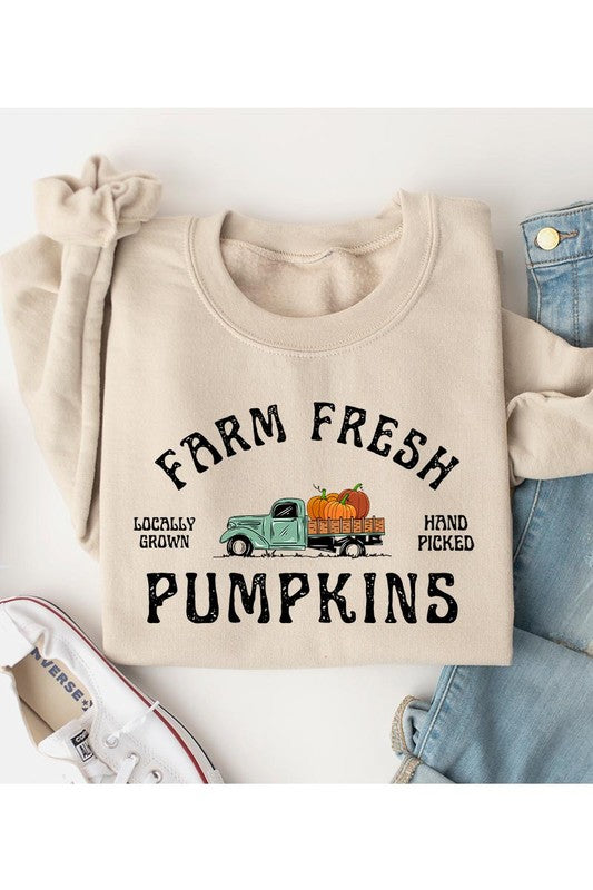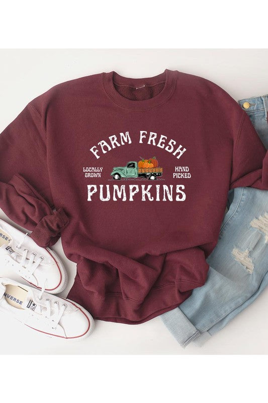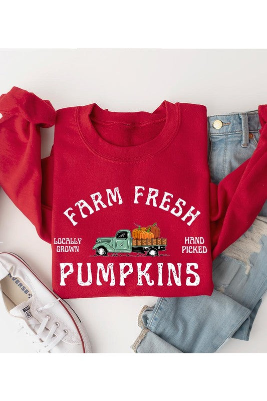 FARM FRESH PUMPKINS,PICK UP TRUCK,THANKSGIVING UNISEX FLEECE SWEATSHIRT,GRAPHIC TEE,GRAPHIC TSHIRTS,TSHIRTS,TEES